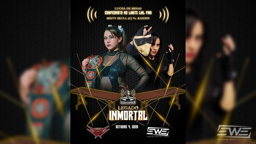 La tensión sigue creciendo en torno al Campeonato No Limits de LML. Durante el evento Legado Inmortal, la campeona Misty Skull sorprendió al público al aceptar el reto lanzado por Raiden, confirmando así un enfrentamiento donde el campeonato estará en juego bajo una estipulación explosiva: lucha de mesas.